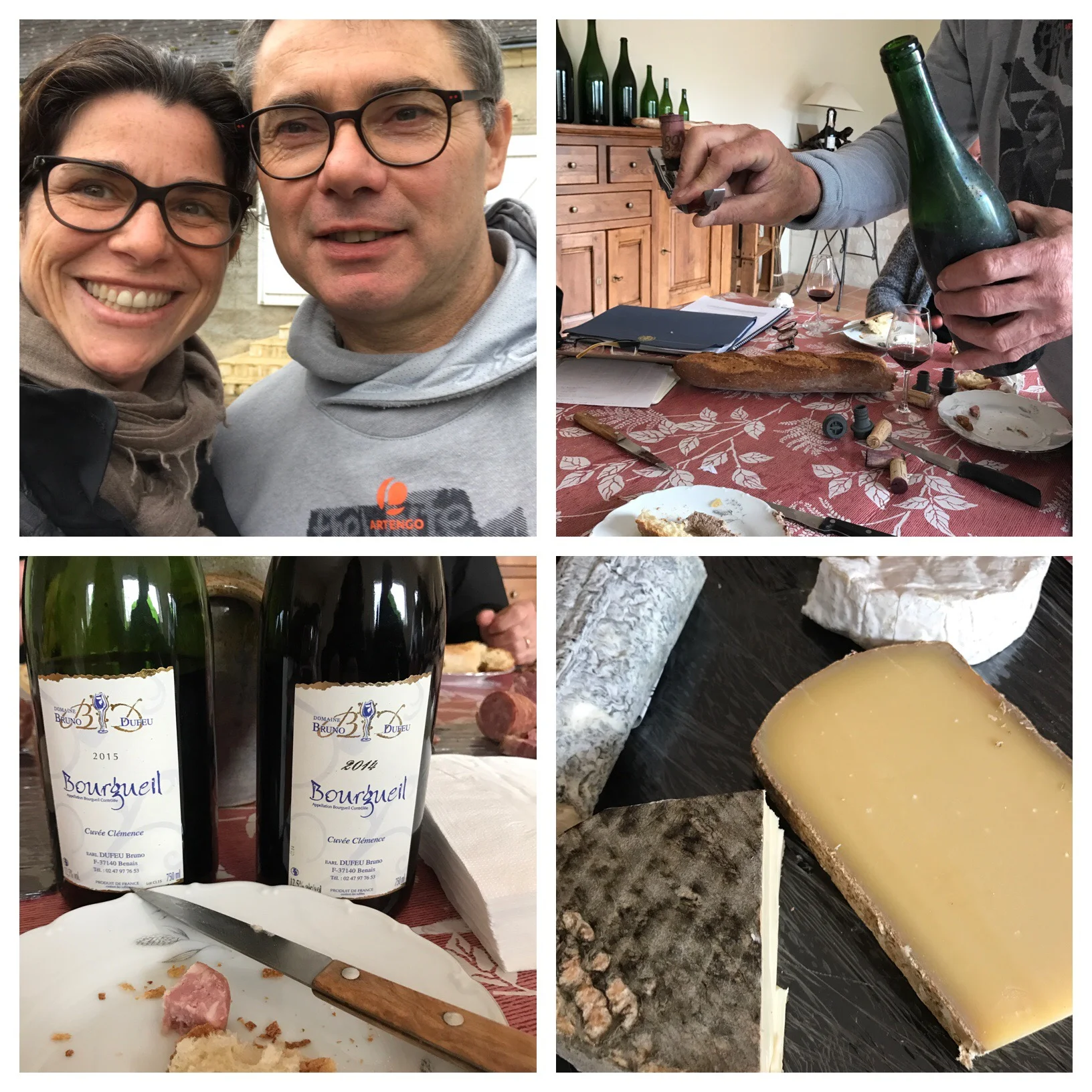 Bruno Dufeu made his first wine in what was his father's vineyard in 1989, and we tasted that along with 1964, 2002, 2005, 2010...are you getting this? Seriously, it was a dreamy day, that began with a tour of his prized vineyard in Grand Mont, what is considered to be the very best wine producing land in Bourguiel because of its ideal location on the slope between forest and lower flat land and its unique soil. Bruno is converting to and cultivating all organic vines; despite the challenges and expense, he believes it is worth it. He grows exclusively Cabernet Franc, known locally as "Breton," grown in degraded sandstone soil that gives the wine is minerality.