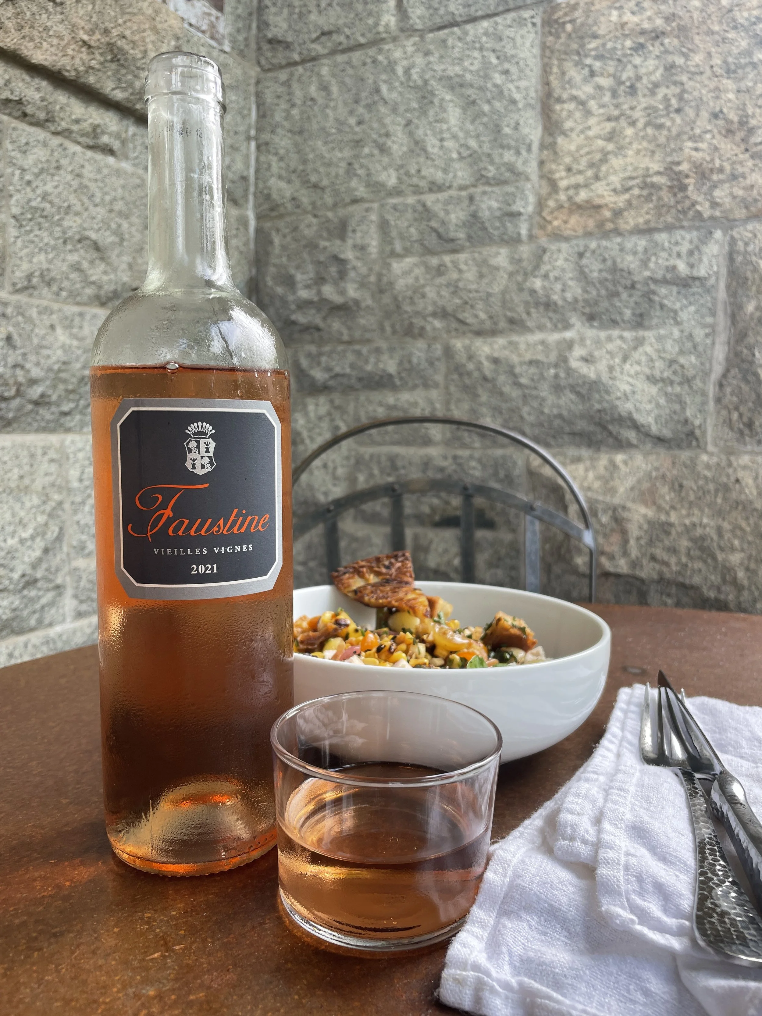 The 2021 Faustine Rosé is made with 90% Sciaccarellu and 10% Barbarossa from 20 year old vines in granitic soil in a vineyard that is on the far Western point of the island, as does the red which is 70% Sciaccarellu and 30% Nielucciu. None of the these grapes are easy to say, but they sure are easy to drink. As delicious as they are, these are food driven wines.