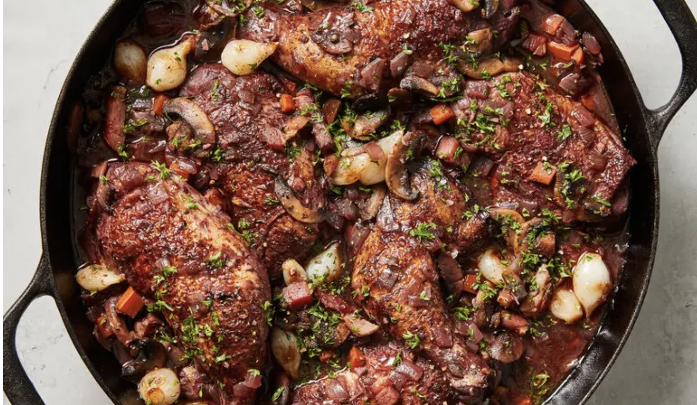 Should you feel like it, the White Wine Coq au Vin is a nice summer time meal that is ideal for a dinner party because it can be prepared fairly easily and in advance, so you can relax when your guests arrive. I modified the recipe from the New York Time by Florence Fabricant.